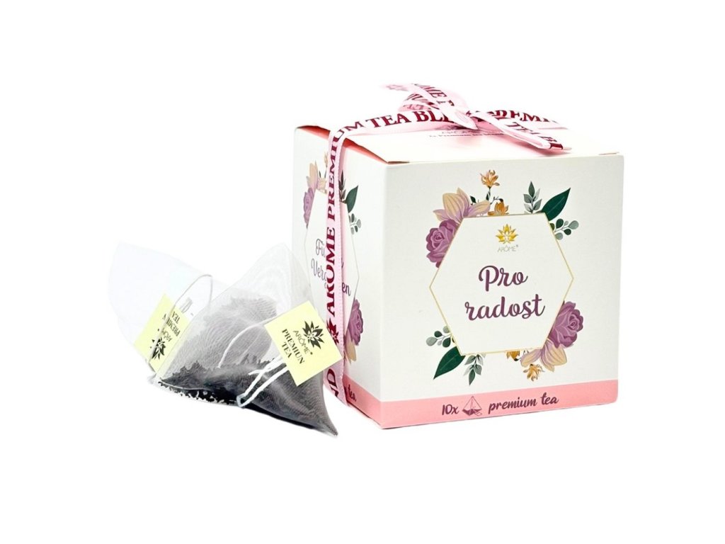Dárkové balení zeleného čaje ARÔME „Pro radost“ – 10 pyramidových sáčků, 2 příchutě: jasmín a masala s růží. Elegantní dárek pro chvíle relaxace.